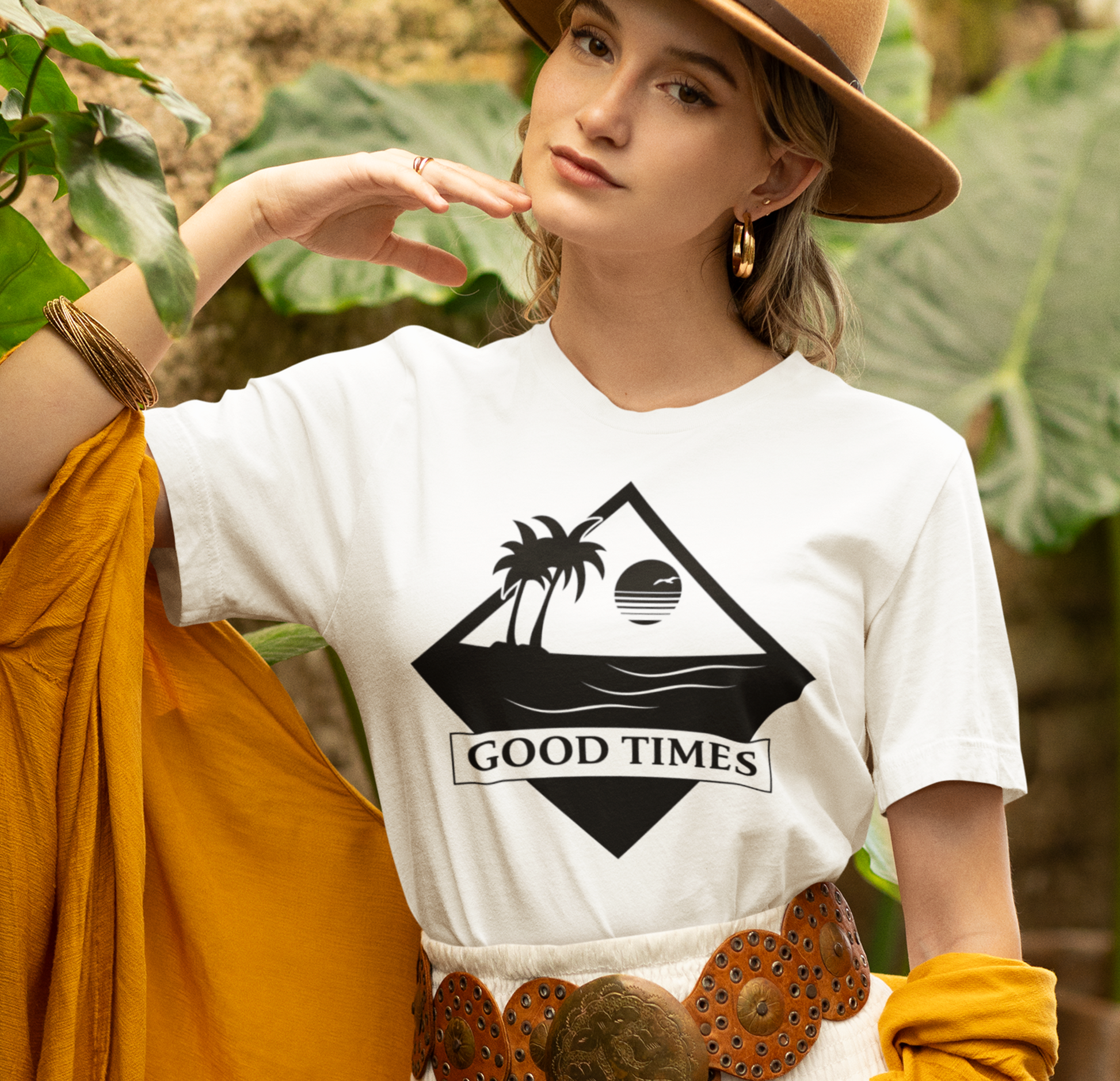 Embrace every moment with the Good Times t-shirt, a versatile and expressive addition to your wardrobe. Crafted with comfort and style in mind, this tee is designed to accompany you through all of life's adventures, from casual outings to laid-back gatherings with friends and family.